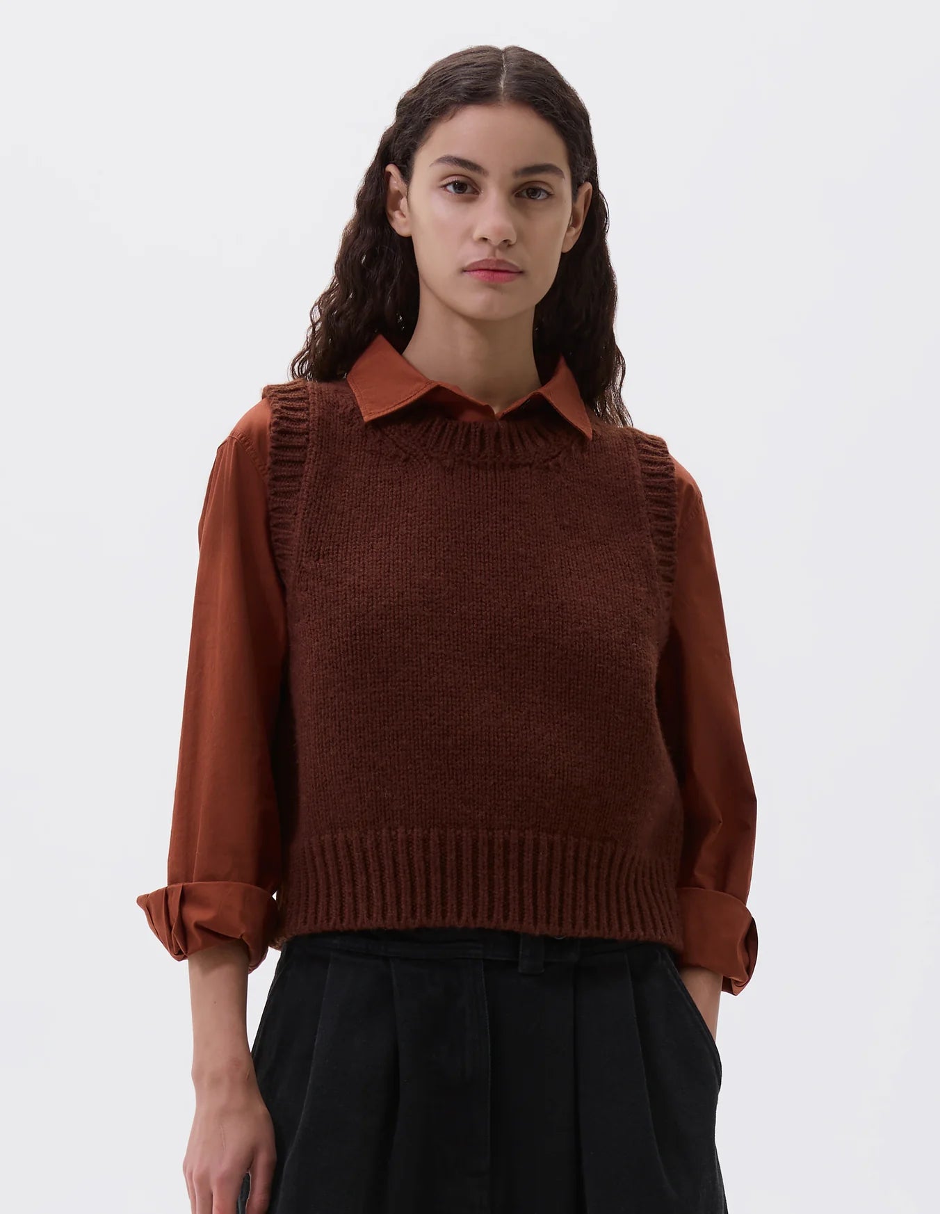 MHL. Chunky Crew Neck Slipover British Merino Rust Brown