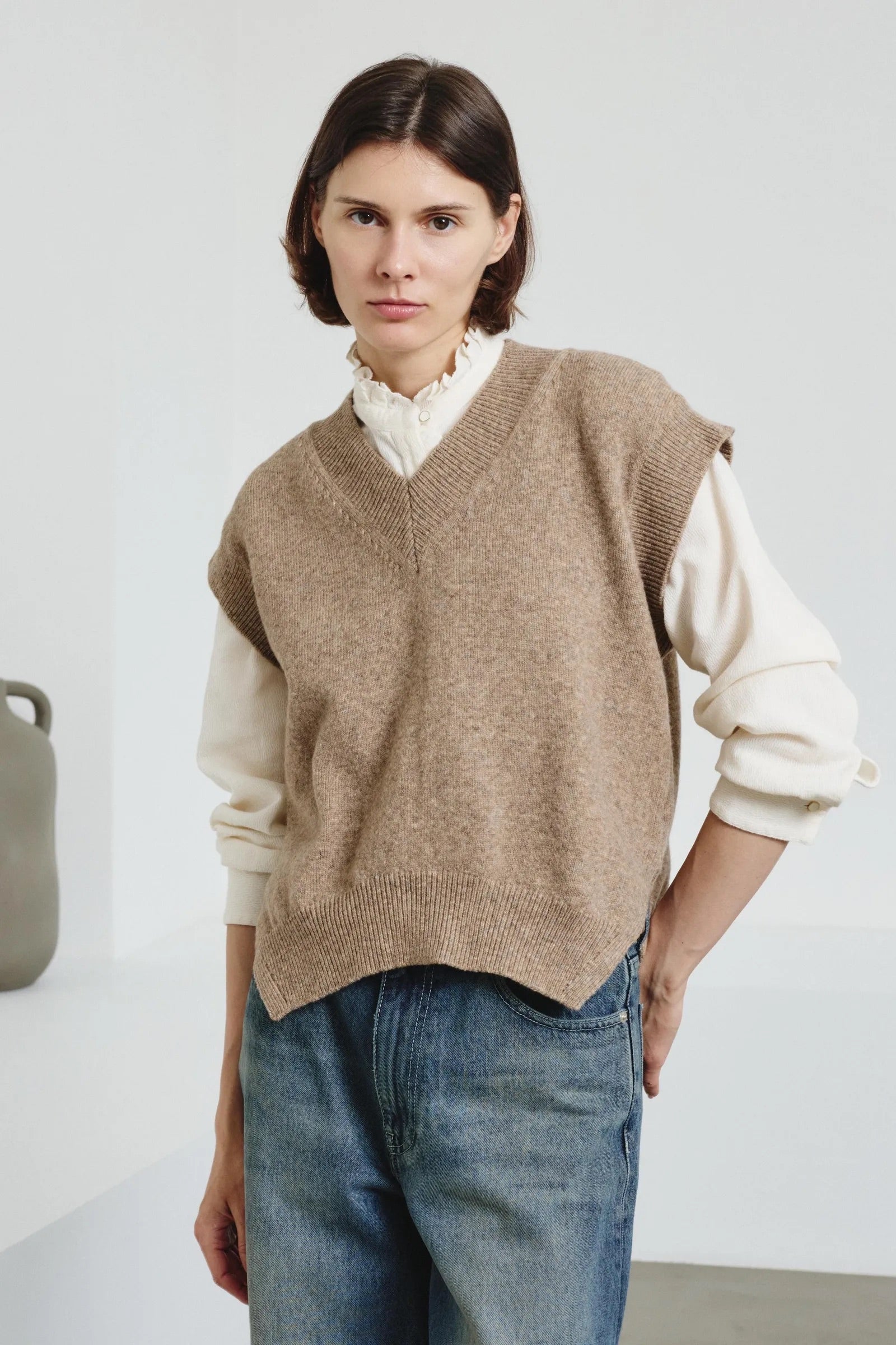 Pomandère Vest in Felted Merino Wool Dove Grey
