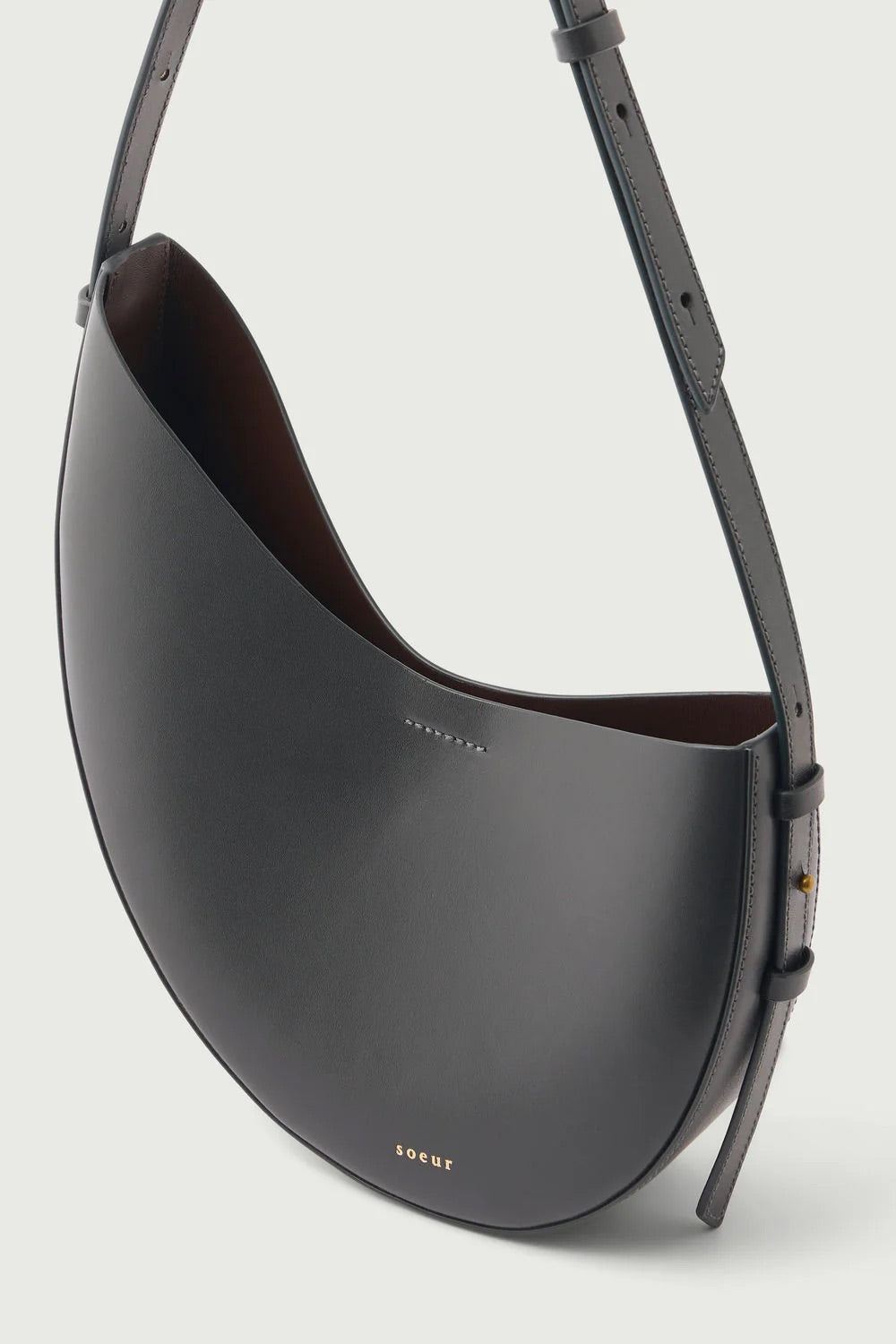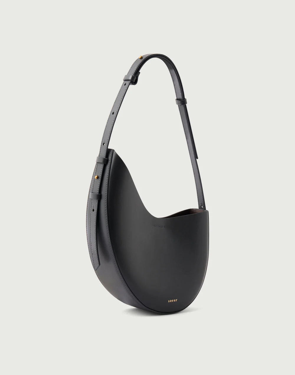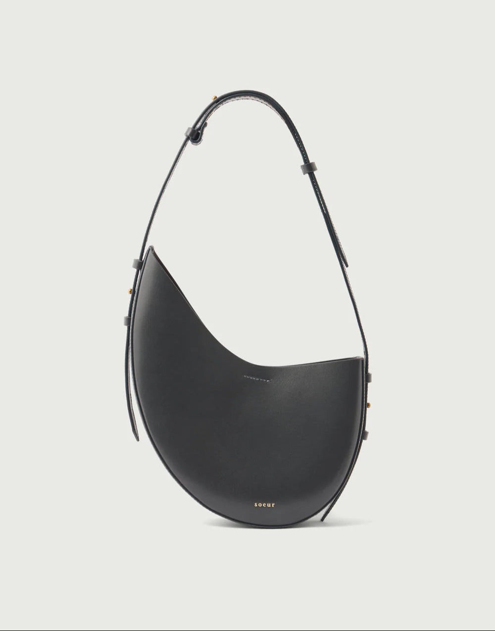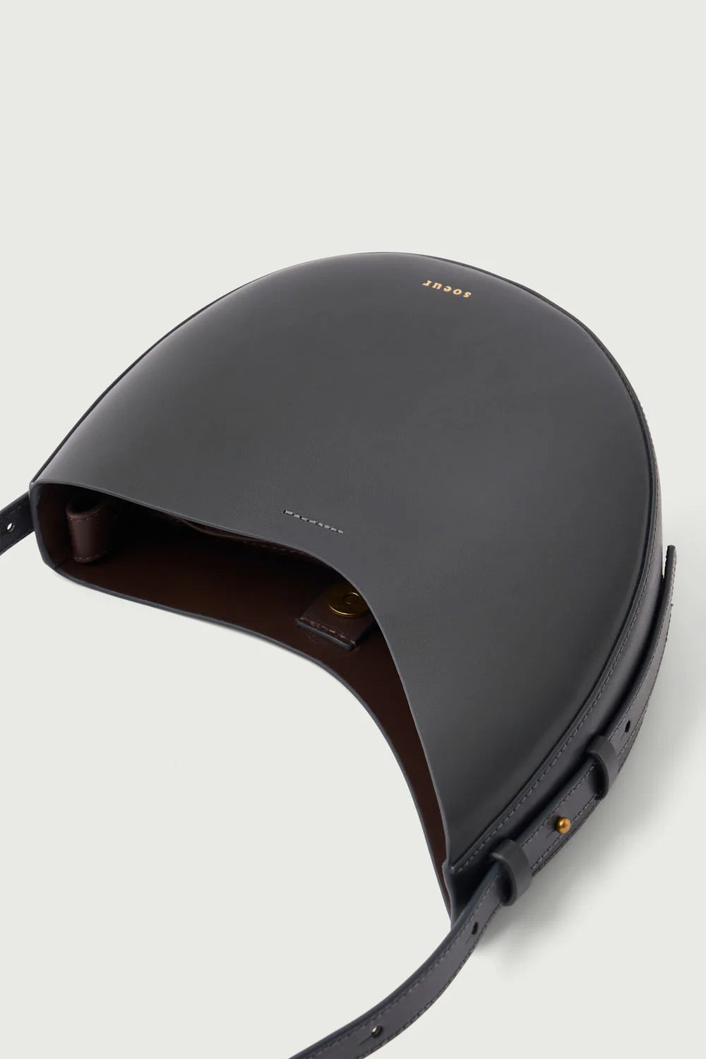 - Detachable lamb leather pouch inside the bag, secured with a snap button.